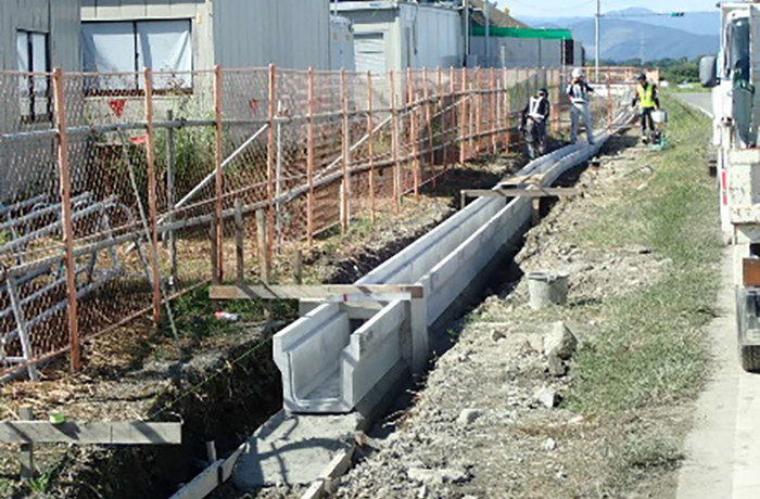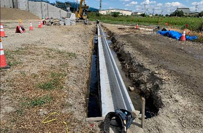海津工区(志津新田交差点南側)の排水構造物設置を進めています。