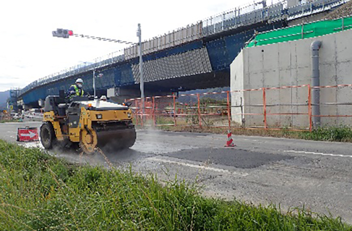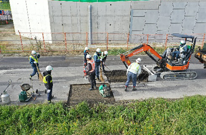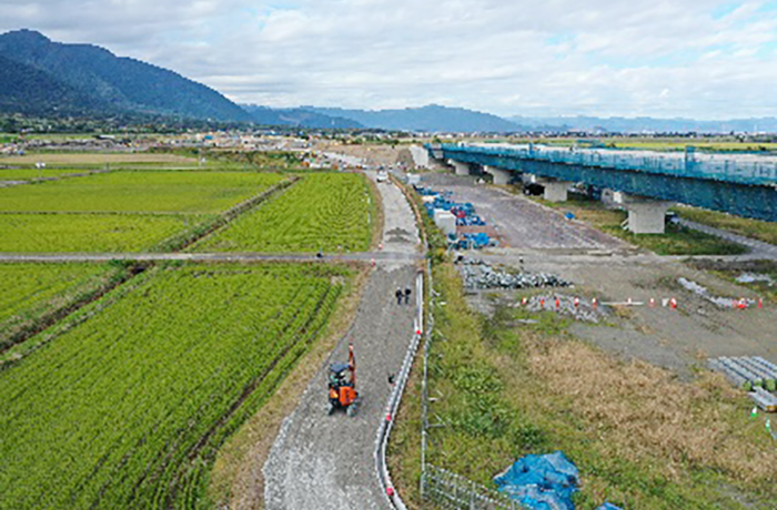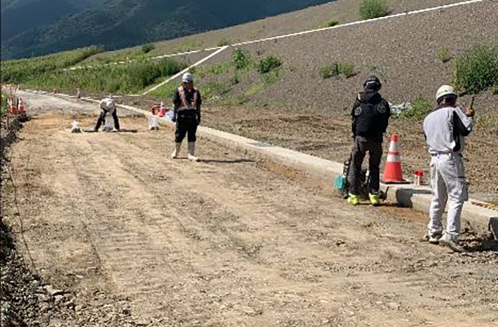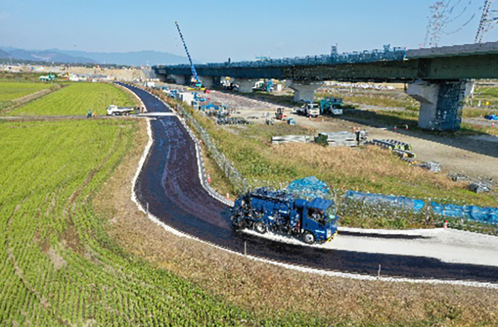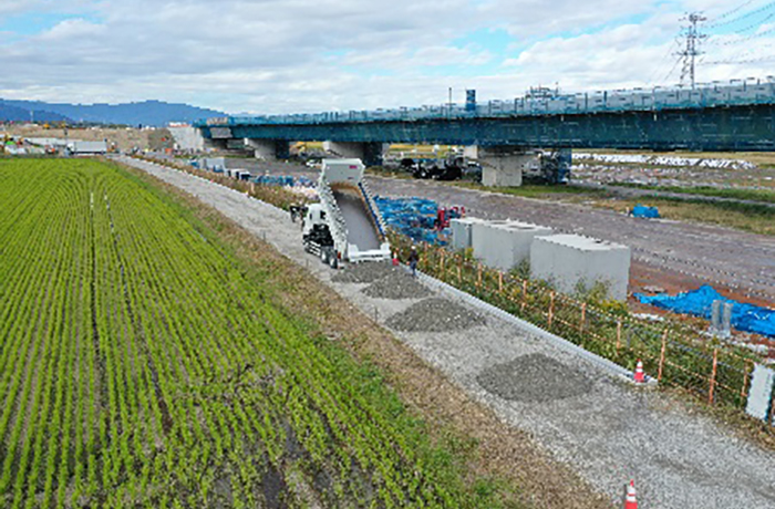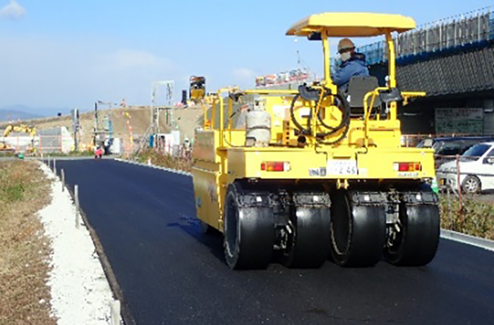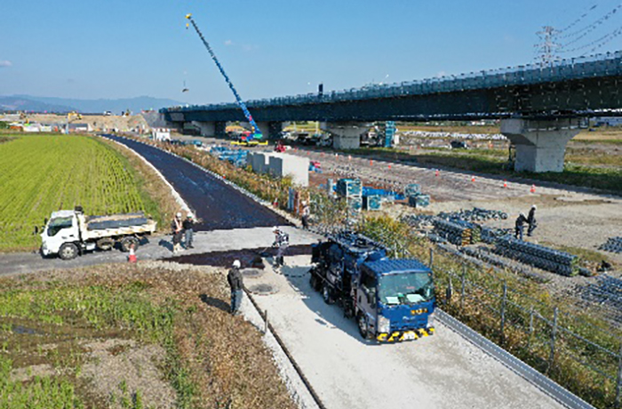 海津工区(志津新田交差点)西側農道の舗装工(下層路盤工、乳剤散布、舗設工)