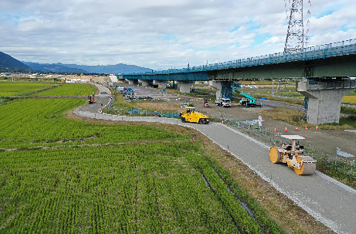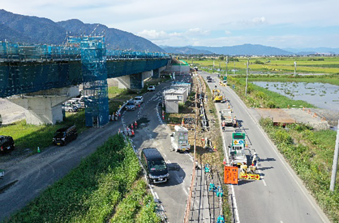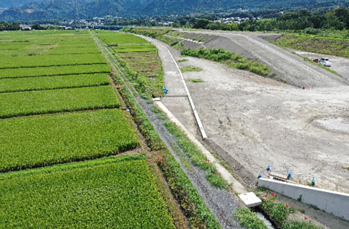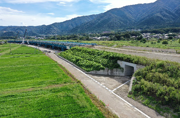 海津工区の排水構造物設置が完了しました。施工中の規制へのご協力有難うございました。