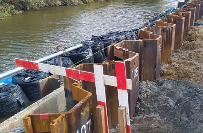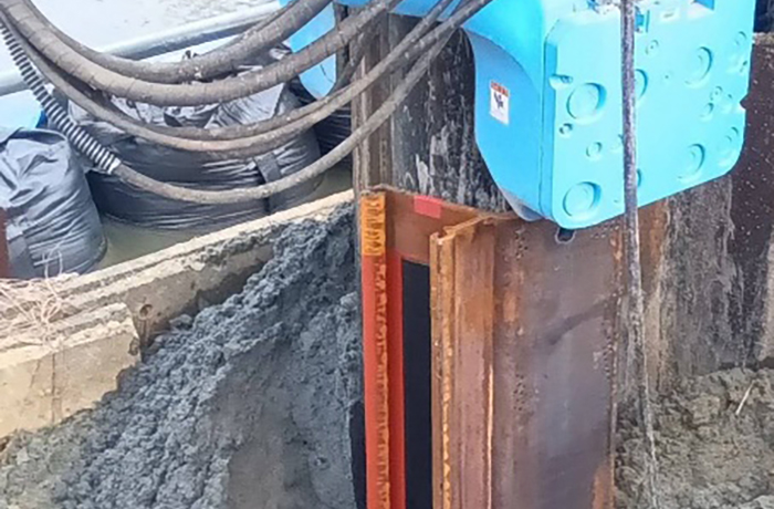 下流部より施工した14mのⅥL型107枚が打設完了、異形矢板を打設し45H型11.5mの打設を進めます。