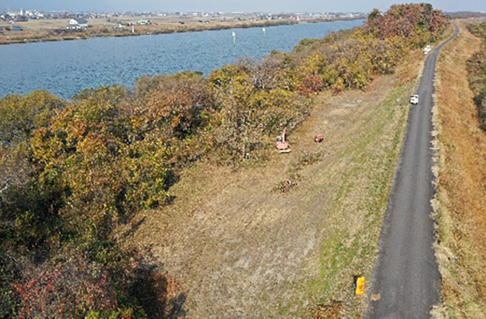 木曽・長良川中堤(長良川左岸)の樹木伐開を進めます。