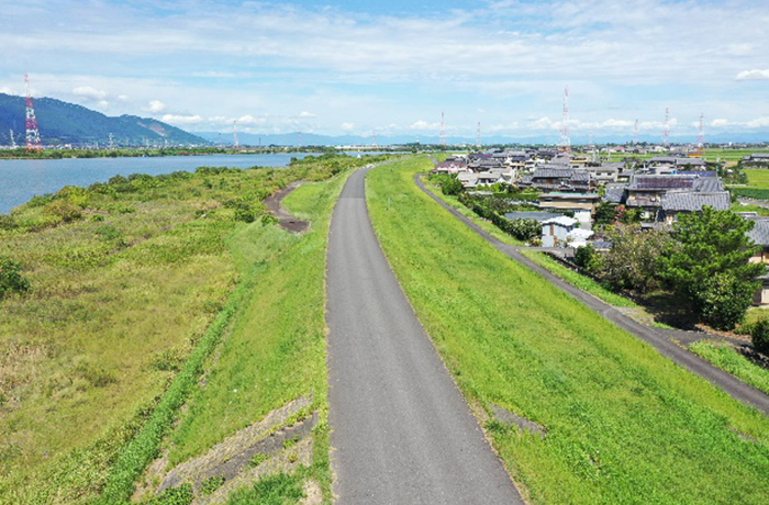 木曽・長良川の高潮堤区間の除草作業が完了し順次上流部の堤防除草を進めています。河川維持工も長島、海津出張所管内各所で進めています。