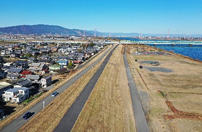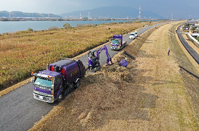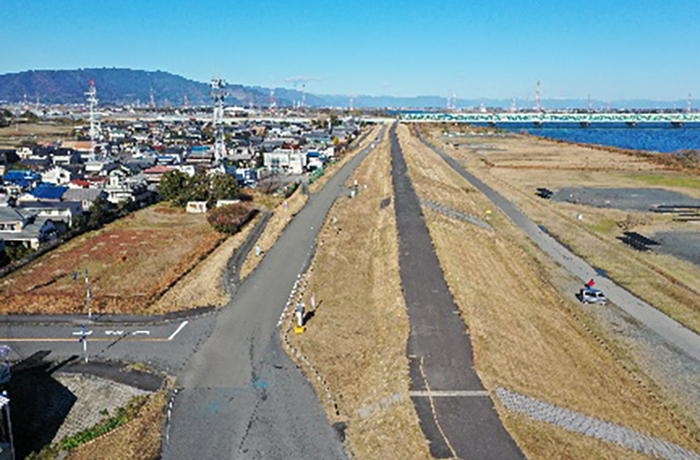 木曽川右岸・長良川左岸の堤防除草作業