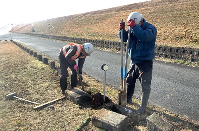 海津出張所管内:揖斐川左岸で既設ブロックなどの修繕作業を行いました。