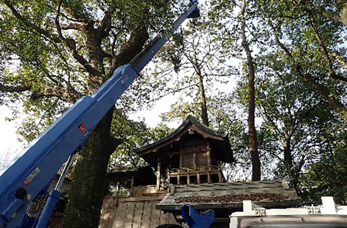 海津出張所管内:治水神社周辺の樹木の枝払い作業を行いました。