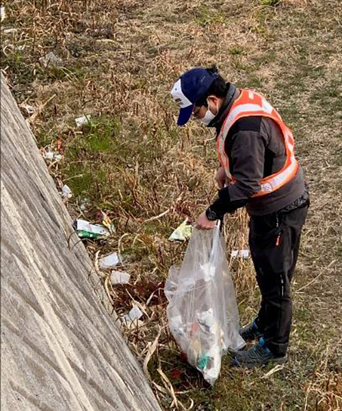 弊社は本制度に登録し、主に揖斐川左右岸(今尾橋から下流)において河川美化活動、堤防の変状把握など行っています。令和7年3月末現在で揖斐川右岸では29回、揖斐川左岸では同じく52回の活動を行っています。