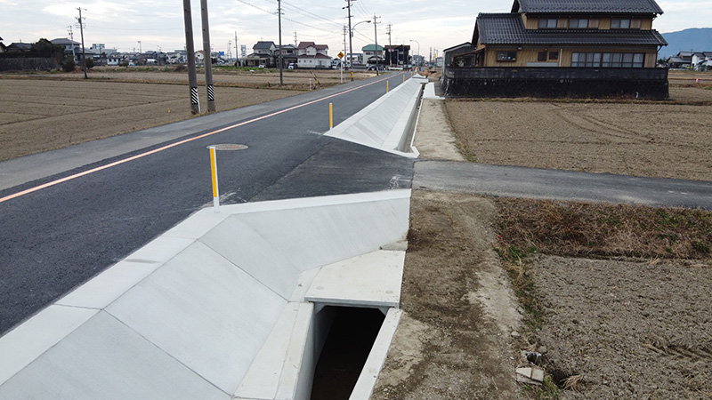 土工、張りコンクリート工、側溝工、舗装工、取付工、集水桝工、道路付属物設置工、ガードレール設置工、区画線工、構造物撤去工、残土処理工