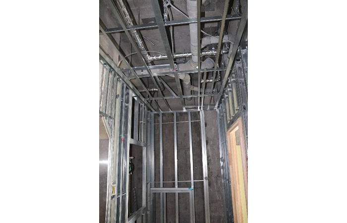 令和3年1月末施工状況 東江小学校 北舎トイレ土間下地 軽量下地と内装施工状況