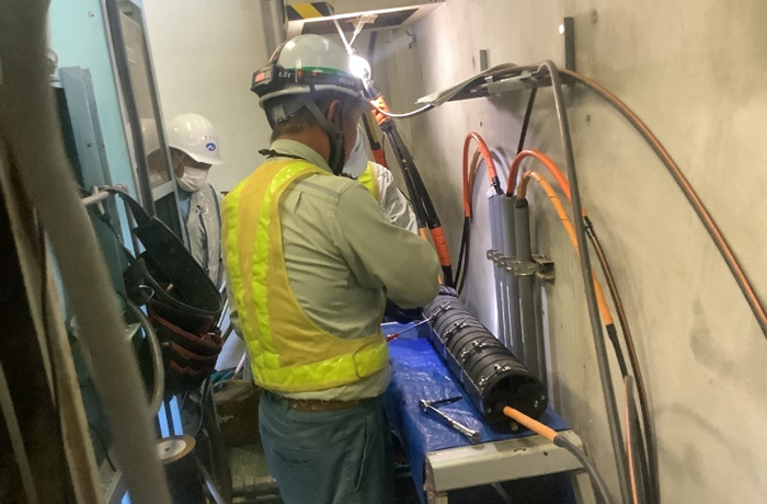 令和3年9月末 西小島工区 川裏小段に埋設された光ケーブルを移設します。仮配管完了。