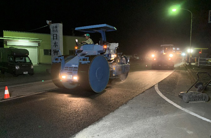 今後、夜間片側交互通行にて舗装工事を進めて行きます。ご協力よろしくお願いいたします。