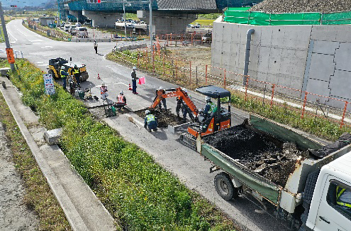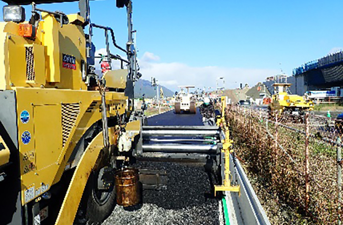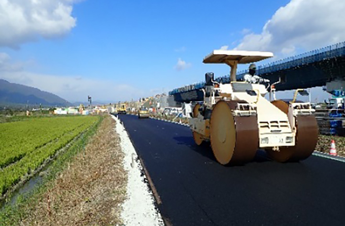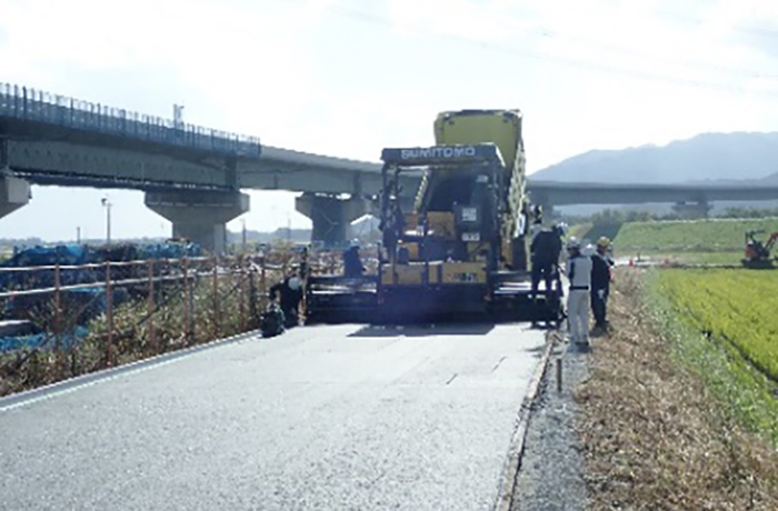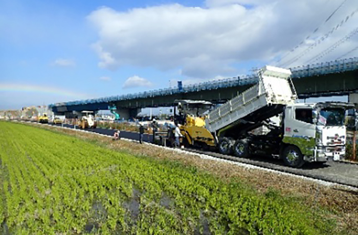 海津工区(志津新田交差点)西側農道の舗装工(下層路盤工、乳剤散布、舗設工)