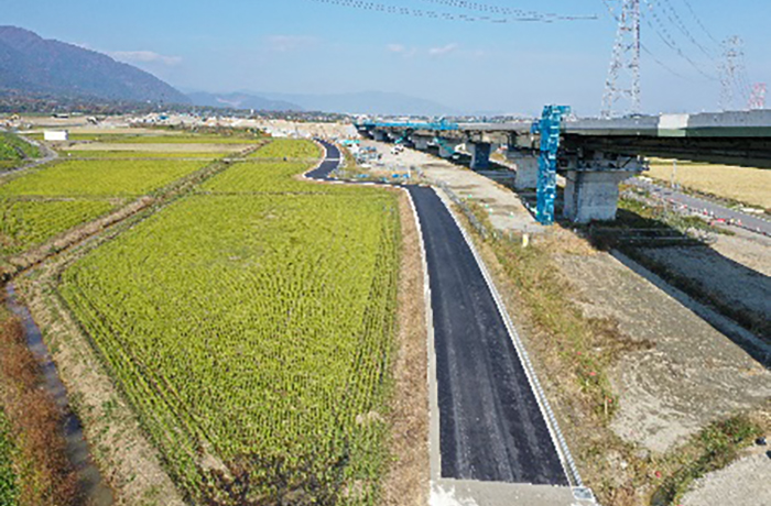 海津工区の舗装工、広域農道の舗装補修作業が完了しました。