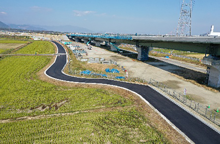 海津工区の排水構造物設置が完了しました。施工中の規制へのご協力有難うございました。