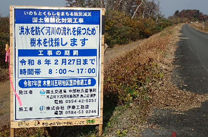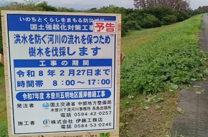 木曽・長良川中堤(長良川左岸)の樹木伐開を進めます。