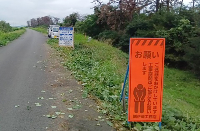 準備工・除草作業を進めました。引き続き測量作業などを進めて行きます。工事看板も設置