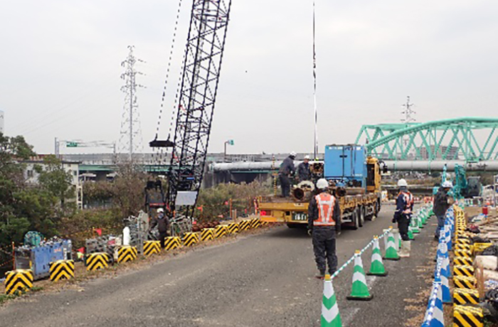 鋼矢板打設の為の足場確保のため光ケーブルを移設しました。