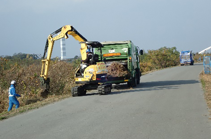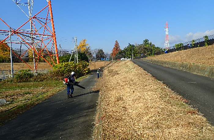 船頭平公園の除草工・除草と集草作業