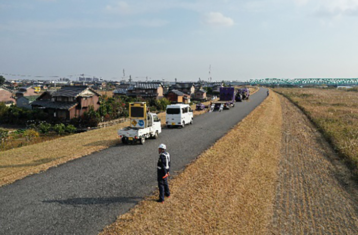 木曽川右岸・長良川左岸の堤防除草作業