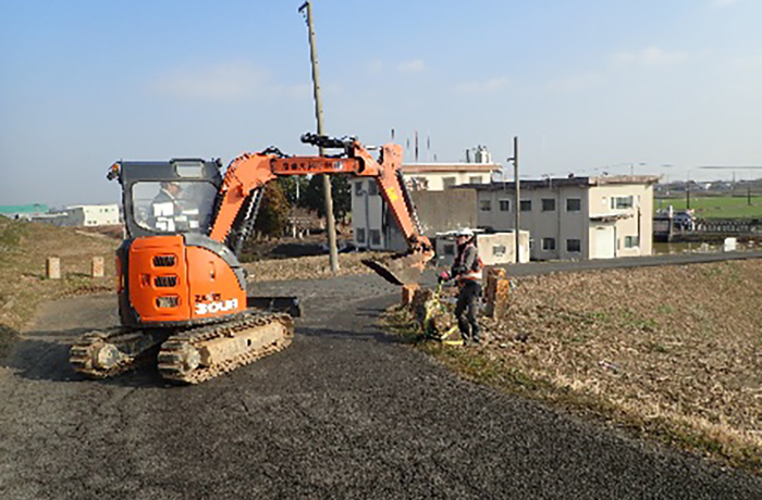 海津出張所管内:揖斐川左岸で既設ブロックなどの修繕作業を行いました。