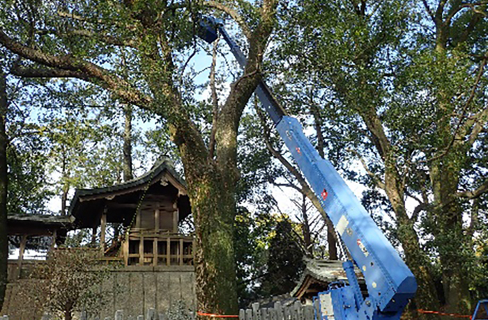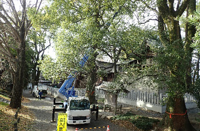 海津出張所管内:治水神社周辺の樹木の枝払い作業を行いました。