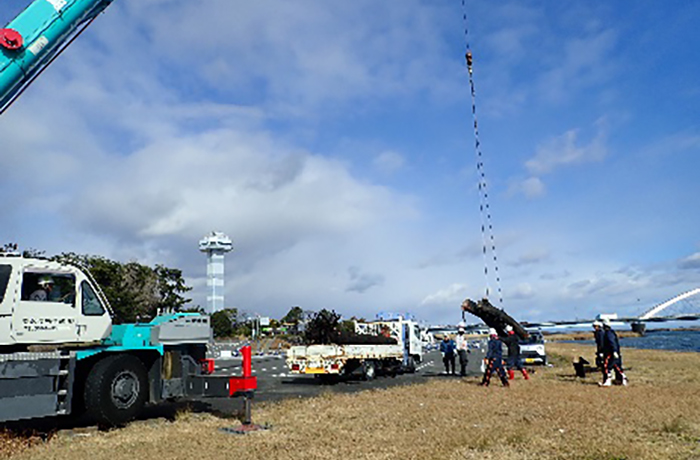 周辺では枯れた松の伐採、護岸上に繁茂した樹木の伐採などを2月末にかけて実施していきます。